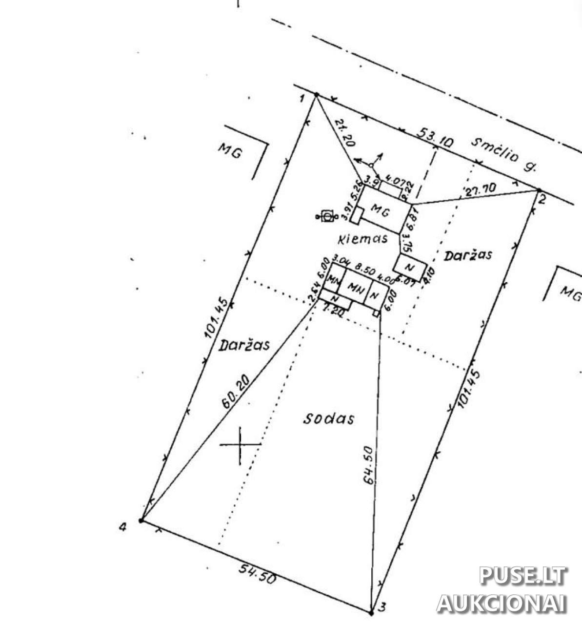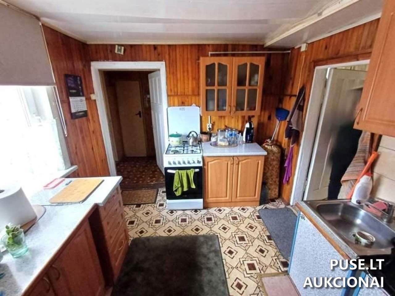 Parduodama 1/4 dalis gyvenamojo namo, viralinės, garažo ir inžinerinių statinių, bei 0.13645 ha žemės sklypo dalis. Pradinė kaina yra 1882 EUR.