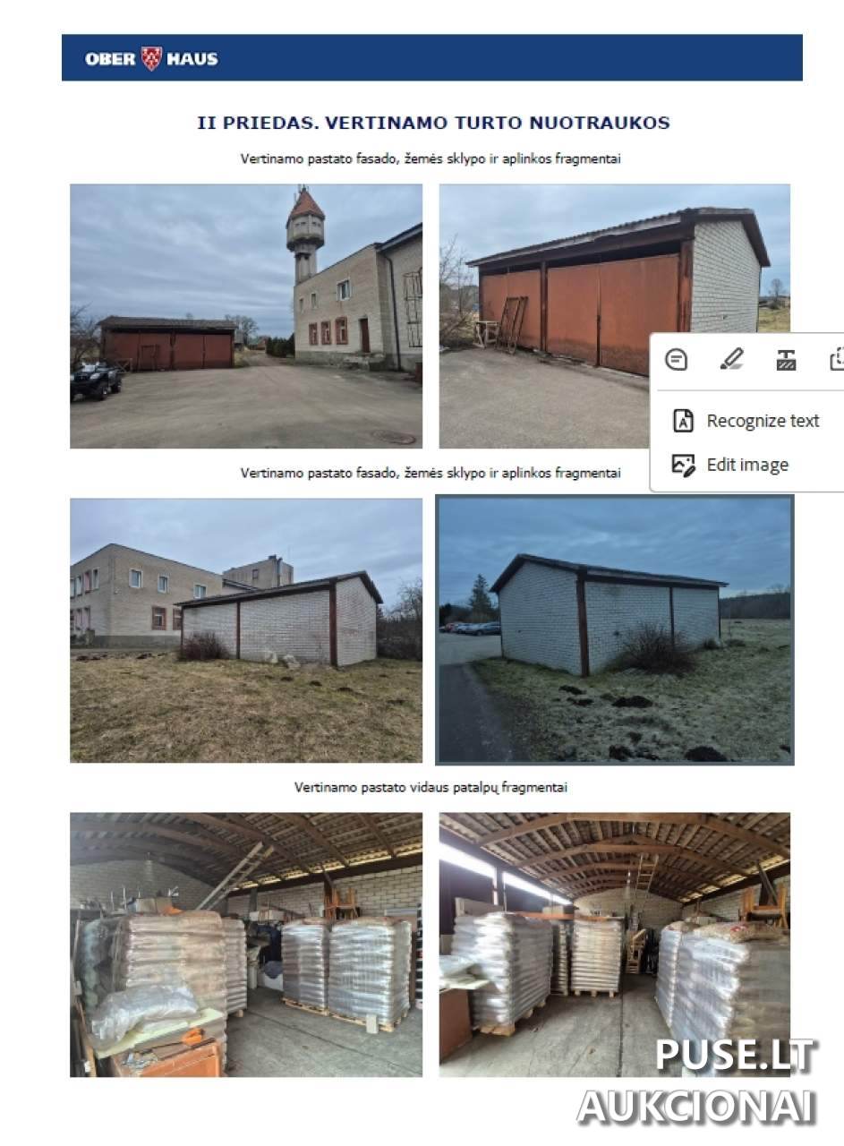 Nekilnojamojo turto unikalus numeris yra 4400-1784-2352. Parduodama visa pastato dalis (1/1). Sandėlio pastato bendras plotas siekia 53,34 kvadratinio metro. Prie pastato priskirta bendrojo naudojimo valstybinės žemės sklypo dalis sudaro 379/7024 (apie 0,0379 ha) su unikaliu numeriu 8814-0001-0119 ir kadastro numeriu 8814/0001:119.