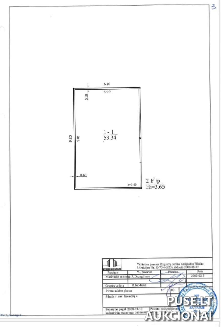 Sandėlio bendras plotas yra 53,34 kv. m, o jam priskirta valstybinės žemės dalis yra 379/7024 (0,0379 ha).
