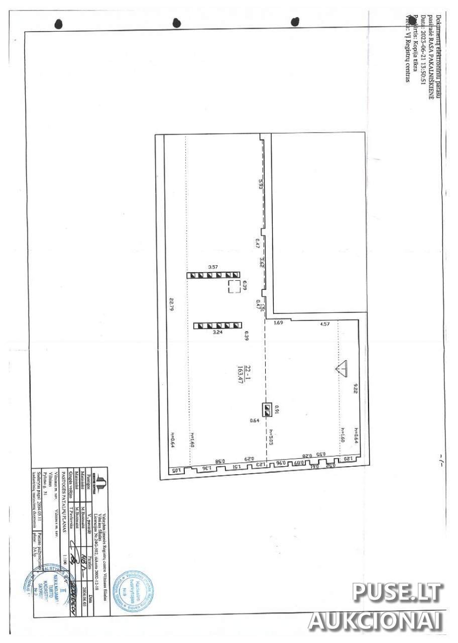 Parduodama 1373/16347 dalis negyvenamosios patalpos - neįrengta pastogė, kuri atitinka 13,73 kv. m iš bendro pastato ploto.