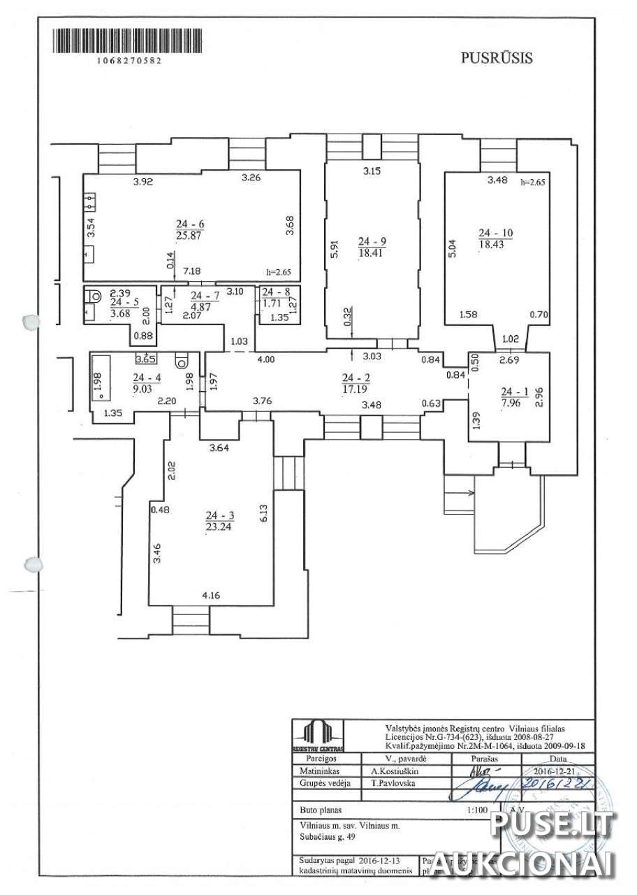 Parduodamas pakartotiniu viešuoju aukcionu 1/1 dalis visuotinai priklausančio nekilnojamojo turto objekto Vilniaus mieste - butas su rūsiu Subačiaus gatvėje 49-24. Unikalus turto Nr. 4400-4432-7299:5538. Butas yra 130,39 kvadratinių metrų ploto, įsikūręs 5 aukštų mūrinio pastato cokoliniame aukšte. Dėl unikalaus objekto pobūdžio, pirkėjas privalo žinoti, jog patalpos yra kultūros vertybės - Vilniaus žydų darbo stovyklos namų ir vietos komplekso (unikalus kodas - 12632) - Vilniaus žydų darbo stovyklos namų ir vietos komplekso Antras namas (unikalus kodas - 37952) - dalis. Kultūros paveldo objektų naudojimas, tvarkymas bei kitų esančių teritorijoje statinių darbai reglamentuojami griežtai pagal Lietuvos Respublikos nekilnojamojo kultūros paveldo apsaugos įstatymą ir kitus teisės aktus. Tai suteikia potencialo, tačiau reikalauja atidumo tvarkant dokumentaciją.