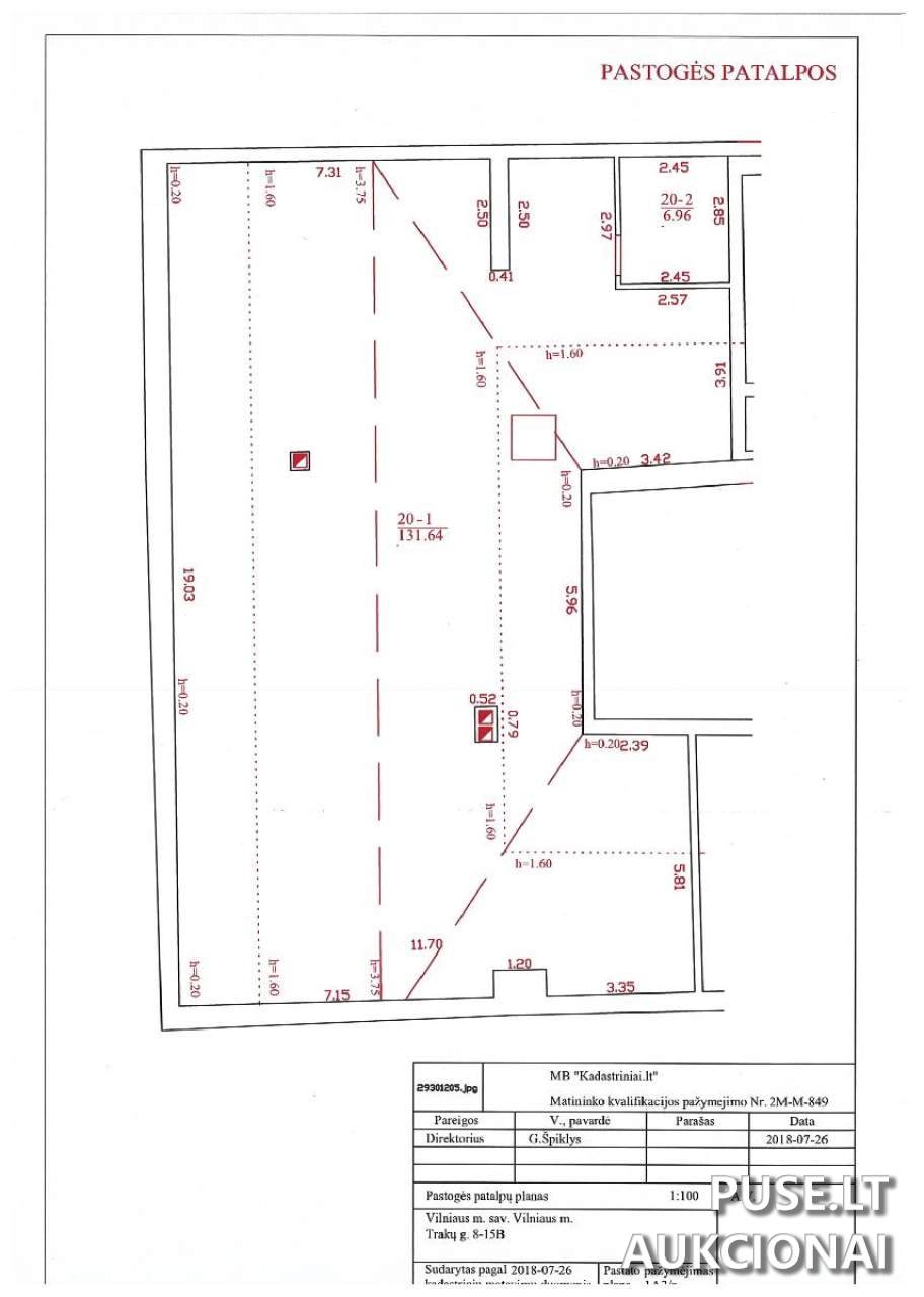 Parduodama 401/3750 dalis negyvenamosios patalpos – neįrengtos pastogės (unikalus Nr. 4400-4454-4425:6466) Trakų g. 8-15B, Vilniuje. Ši dalis sudaro 14,82 kv. m iš bendro 138,60 kv. m ploto trijų aukštų mūrinio pastato, esančio valstybės saugomo kultūros paveldo objekto teritorijoje.