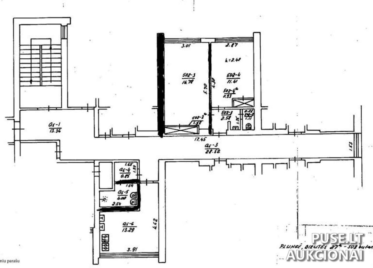Parduodama 34.19 kv. m. bendro ploto dalis su papildomomis 7.49 kv. m. bendro naudojimo patalpų dalimis. Adresas: Plungės r. sav. Plungės m. Birutės g. 27A-502.