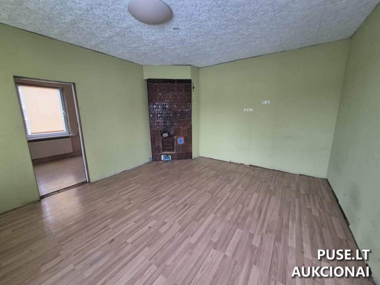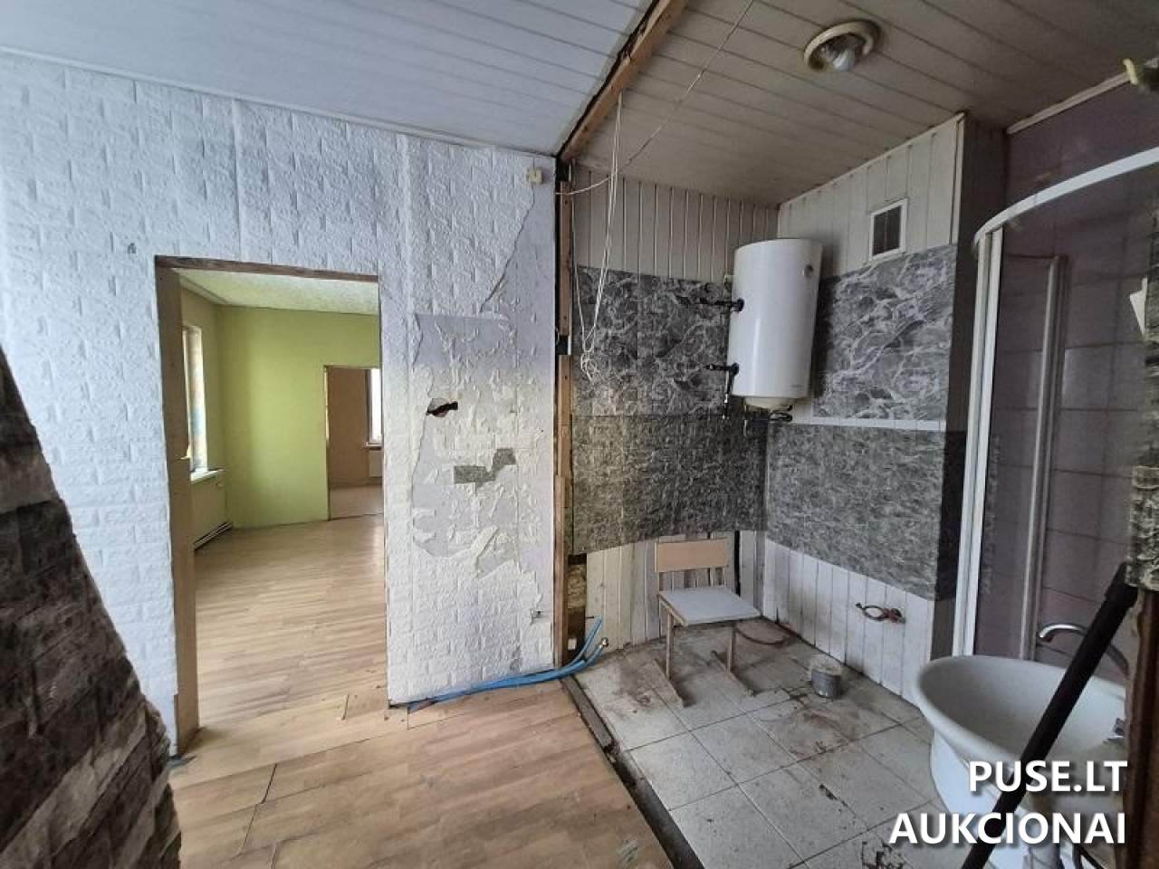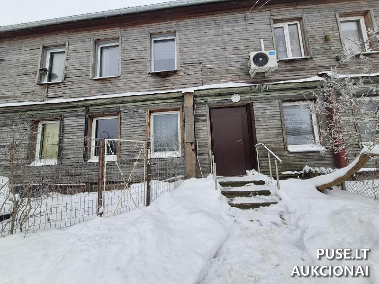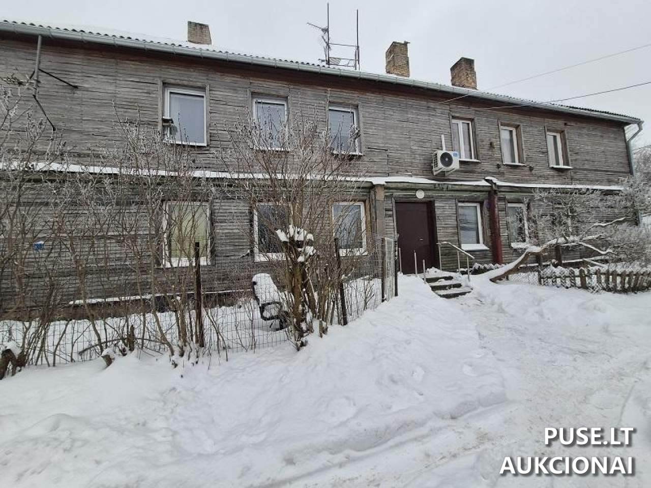 Pradinė objekto kaina yra 31500 EUR. Parduodama 40,45 kv. m. ploto dalis (1/1) dviejų aukštų medinio pastato pirmame aukšte.
