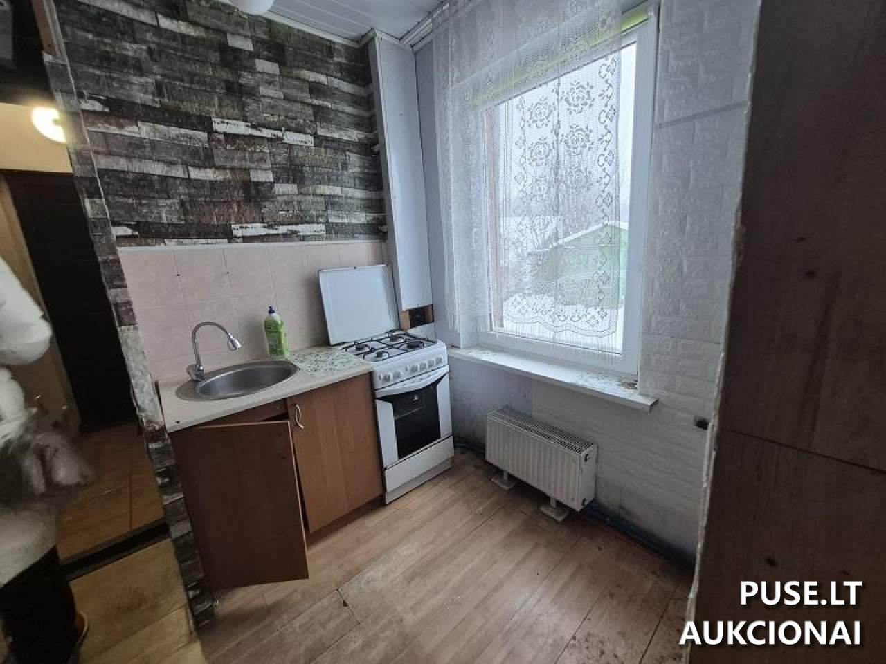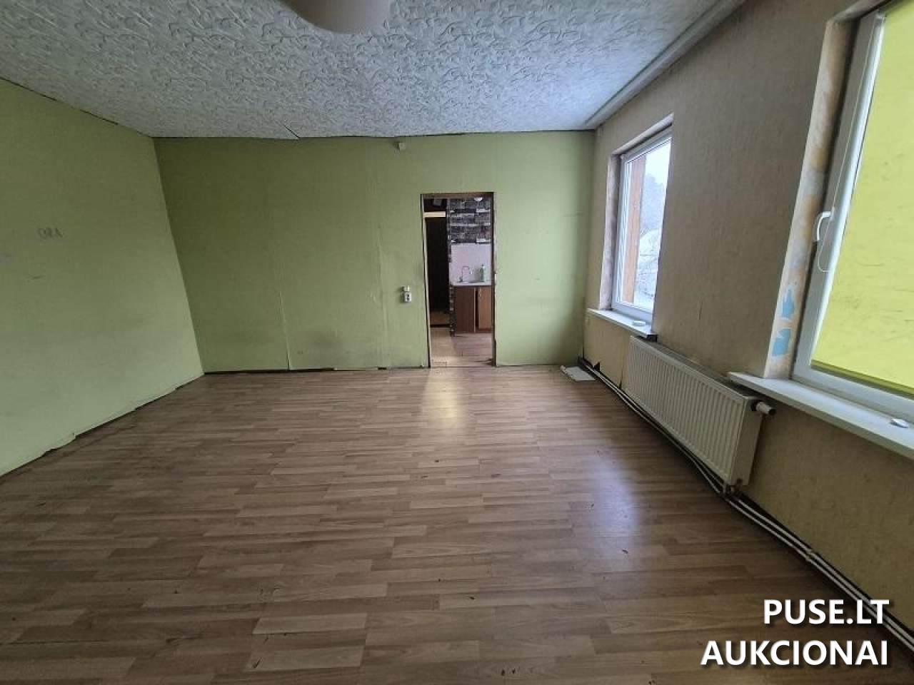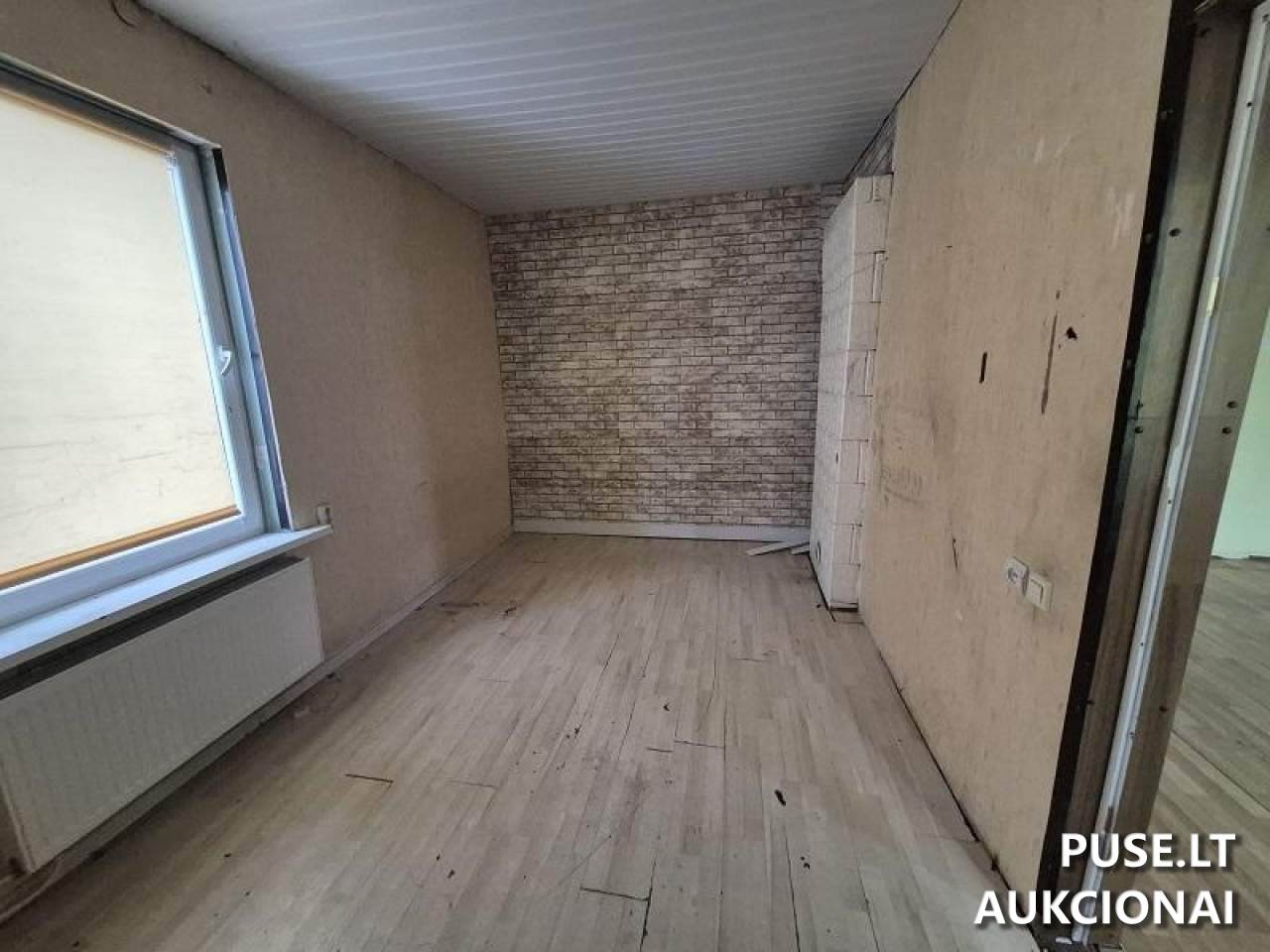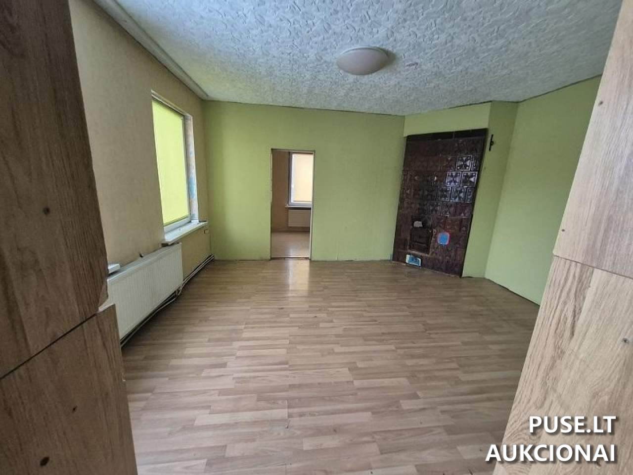 Pradinė objekto kaina yra 31500 EUR. Parduodama 40,45 kv. m. ploto dalis (1/1) dviejų aukštų medinio pastato pirmame aukšte.