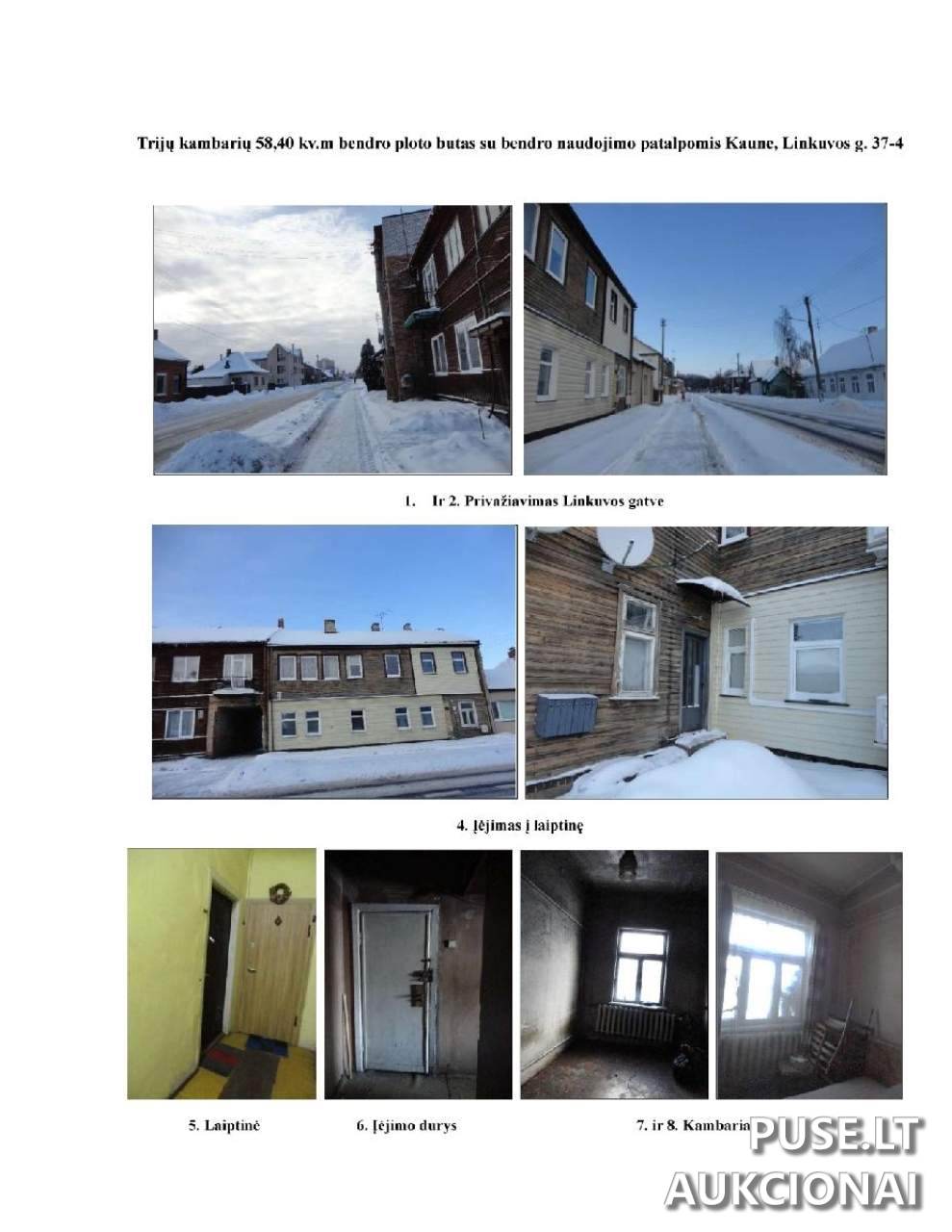 Parduodama 1/2 dalis 58.40 kv. m bendro ploto buto (patalpos) aukcione Kauno mieste, adresu Linkuvos g. 37-4. Šis nekilnojamasis turtas parduodamas antrinės rinkos būdu, taikant antstolių varžytynes. Bute yra bendro naudojimosi patalpų dalys, pažymėtos plane: a-1 (1/3 nuo 2.36 kv.m), a-2 (1/3 nuo 8,76 kv.m) ir a-3 (1/3 nuo 6,97 kv. m). Nekilnojamojo turto unikalus numeris, rodantis parduodamos dalies registraciją, yra 1993-1015-7016:0004. Parduodama dalis yra su disponavimo teisių apribojimu. Pradinė kaina, nuo kurios prasideda varžytinės, siekia 24760 EUR. Aukcionas prasideda 2026-04-15 12:09:43 ir baigiasi 2026-05-15 12:09:59. Šis objektas yra puiki investicinė galimybė į nekilnojamąjį turtą Kauno rinkoje.