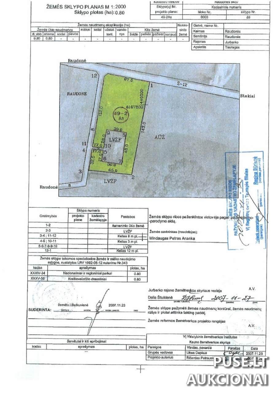 Parduodamas 0.8000 ha ploto žemės ūkio paskirties žemės sklypas Jurbarko rajono savivaldybėje, Raudonės miestelyje, antstolių varžytynių iniciatyva. Šis unikalus turto vienetas, kurio bendras plotas yra 0.8000 hektaro, yra pilnai priskirtas žemės ūkio naudojimo paskirčiai. Visa turima žemės ūkio naudmenų dalis taip pat sudaro 0.8000 ha, apimanti 0.8000 ha ariamos žemės. Žemės ūkio naudmenų našumo balas šiam sklypui nustatytas 46.0.