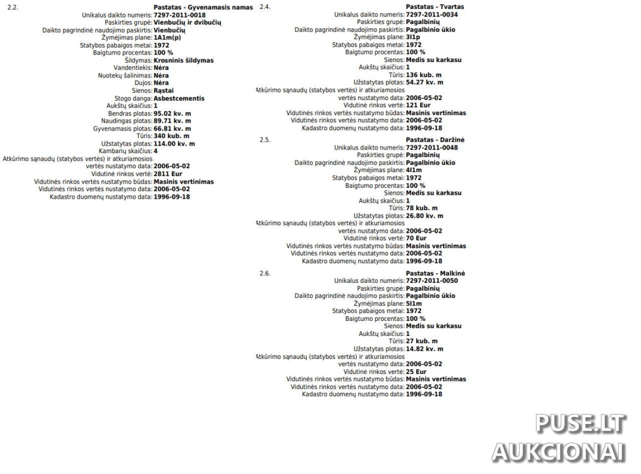 Svarbu atkreipti dėmesį, kad 1/2 gyvenamojo namo priklauso Valstybei. Objektui yra taikomas turto areštas. Unikalus daikto registracijos numeris – 7297-2011-0018.
