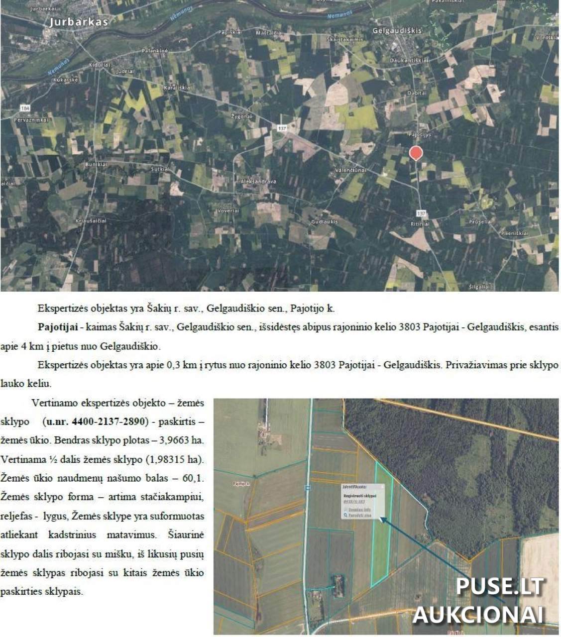Parduodama 1/2 nekilnojamojo turto dalis - žemės ūkio naudmenų paskirties žemės sklypas Šakių rajono savivaldybėje, Pajotijo kaime, pradinė kaina siekia 16800 EUR. Sklypas suformuotas atliekant kadastrinius matavimus. Žemės ūkio naudmenų našumo balas yra 60.0. Pardavimas vyksta iš varžytynių Antstolių būdu, todėl pirkėjas turi įsidėmėti specifikas, susijusias su šiuo pirkimo šaltiniu.