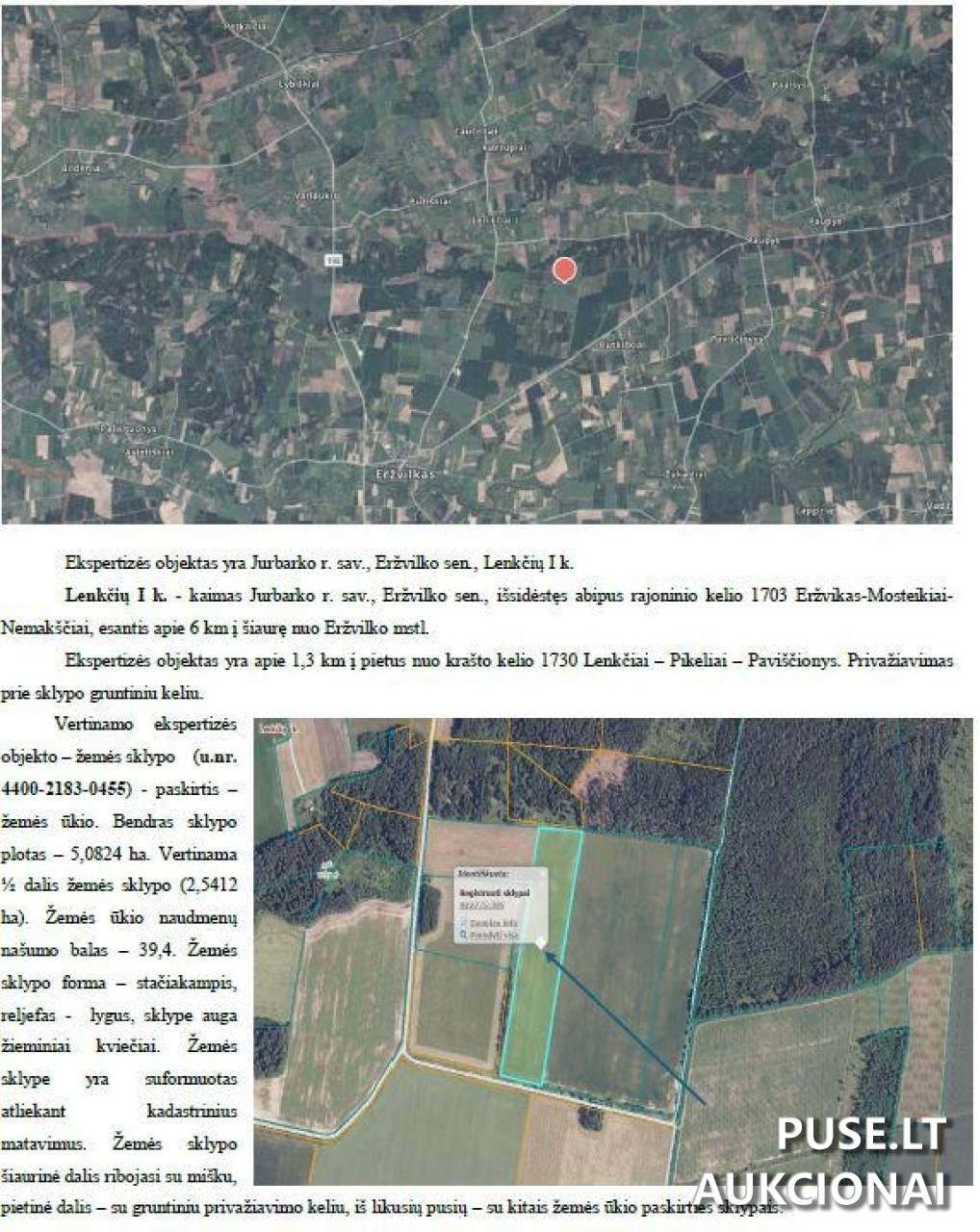 Parduodamas 1/2 dalis žemės ūkio paskirties žemės sklypo Jurbarko rajono savivaldybėje, Lenkčių I kaime, antstolių varžytynių būdu. Šis žemės sklypas suformuotas atlikus kadastrinius matavimus ir turi 39.4 žemės ūkio naudmenų našumo balą.