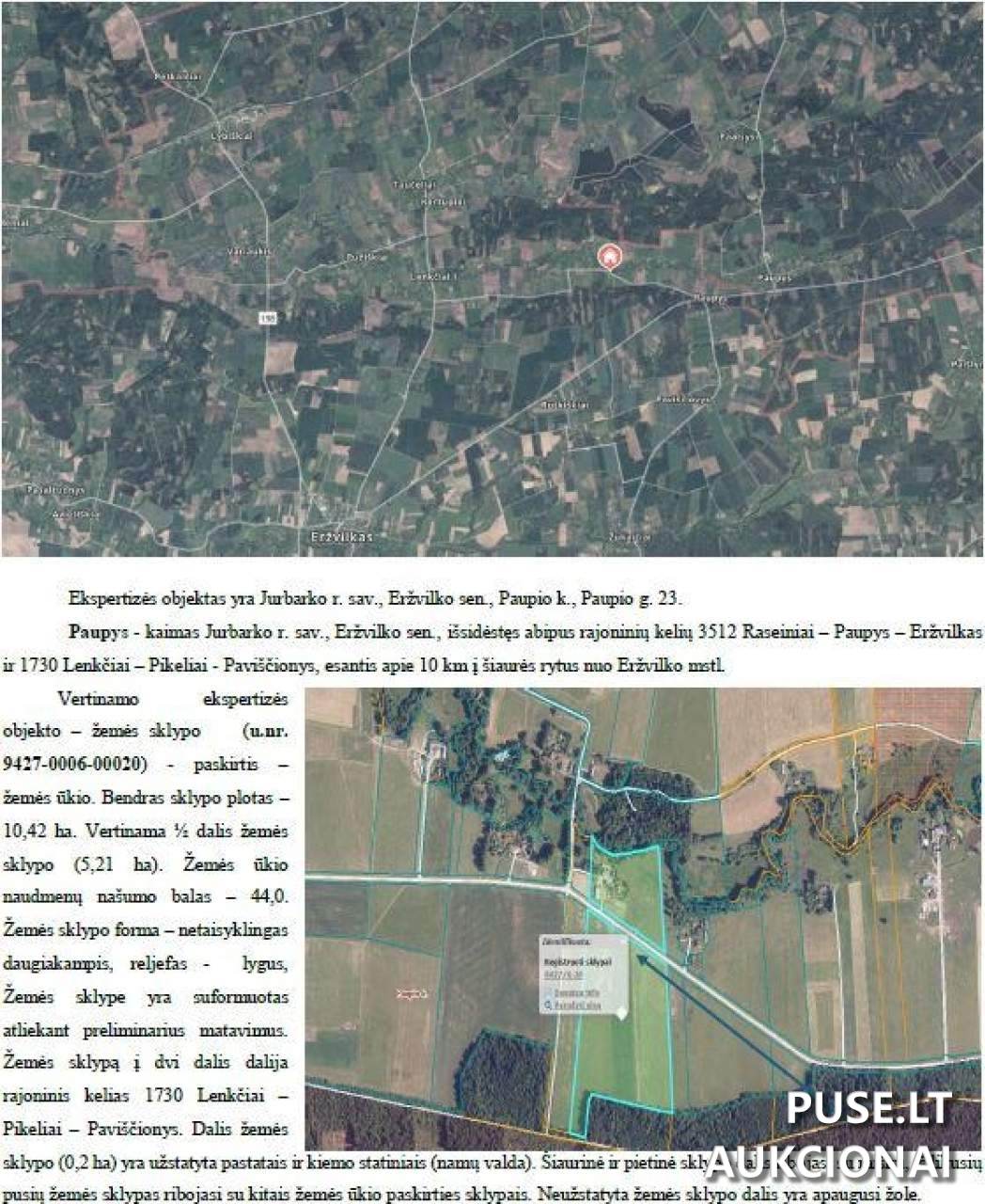 Parduodama 1/2 dalis žemės ūkio naudmenų paskirties žemės sklypo Jurbarko rajono savivaldybėje, Paupio kaime, Paupio gatvėje, numeriu 23. Šiuo metu vyksta antstolių varžytynės, kurių pradinė kaina nustatyta 25040 EUR. Sklypo pagrindinė charakteristika yra žemės ūkio naudmenų našumo balas, kuris siekia 34.0. Sklypas suformuotas atliekant preliminarius matavimus. Unikalus parduodamo objekto identifikavimo numeris yra 9427-0006-0020, o kadastro numeris 9427/0006:20. Objekto statusas yra vykstančios antstolių varžytynės.