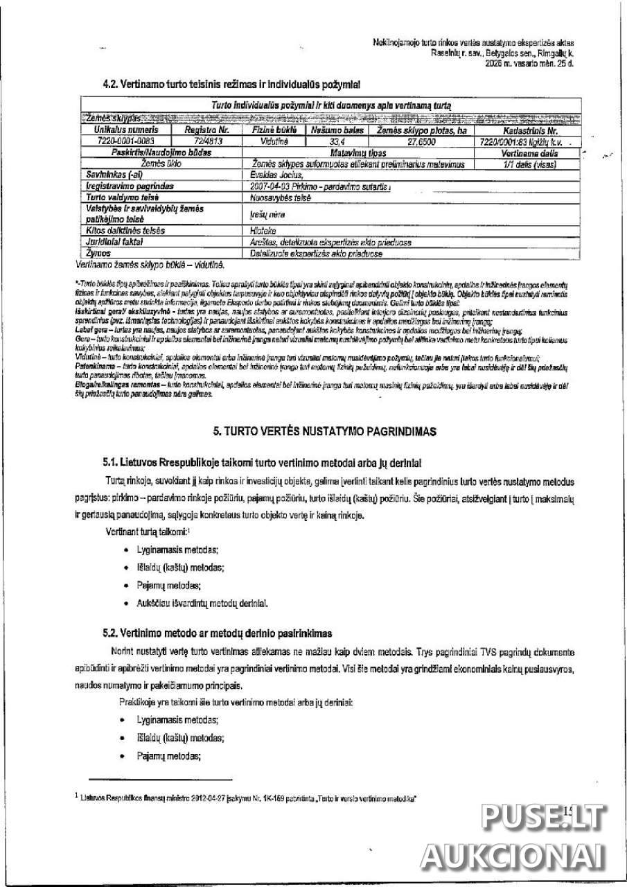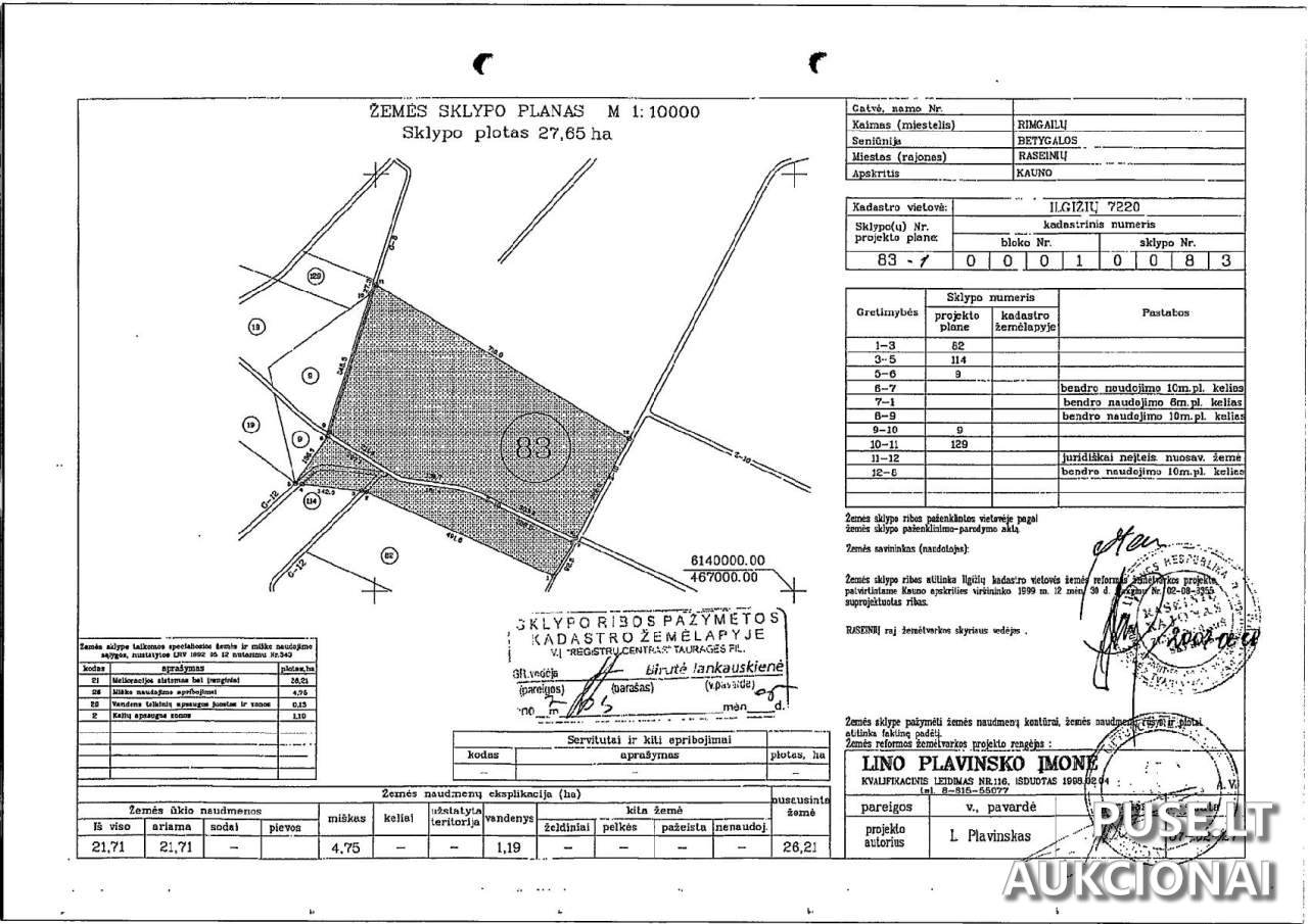 Parduodamo turto pagrindinė naudojimo paskirtis yra Žemės ūkio. Bendras žemės sklypo plotas yra 27.6500 ha.