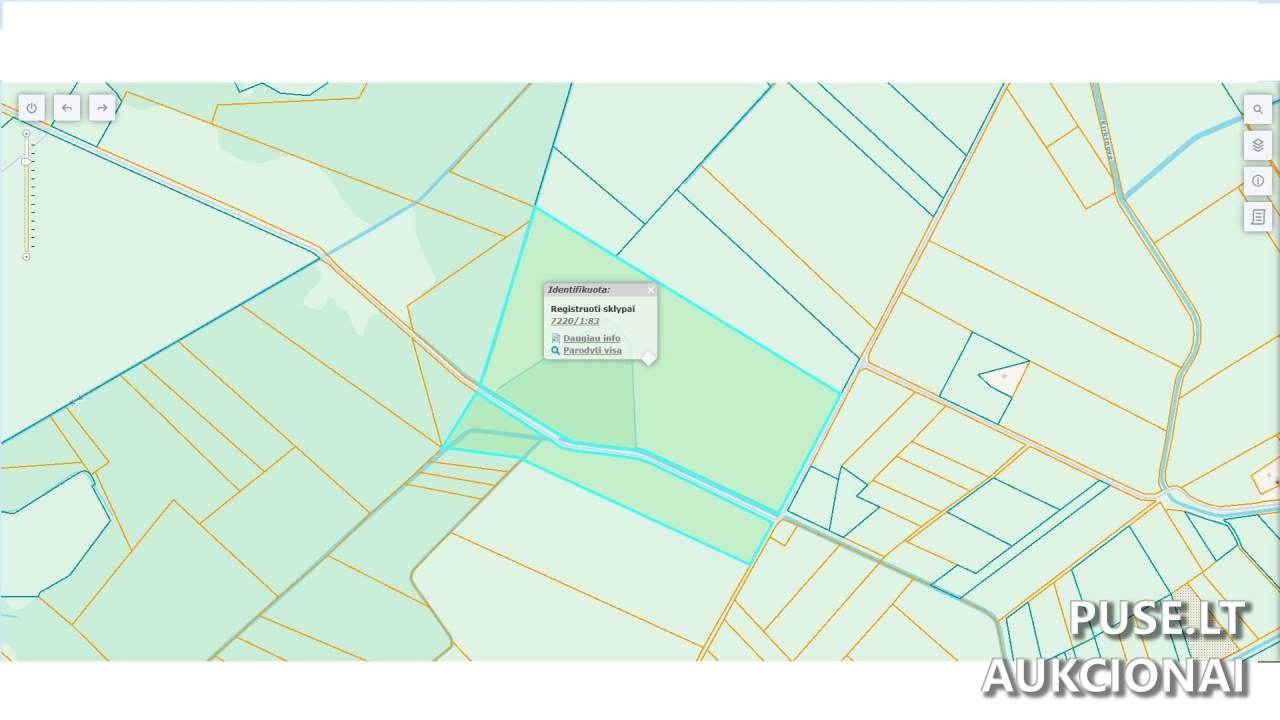 Sklypo kadastro numeris 7220/0001:83, unikalus Nr. 7220-0001-0083. Pagrindinė sklypo naudojimo paskirtis yra žemės ūkio. Iš bendro 27.6500 ha ploto, 21.7100 ha yra žemės ūkio naudmenos (ariama žemė), 4.7500 ha - miško žemė. Taip pat yra 1.1900 ha vandens telkinių. Miško žemės plotas, įregistruotas Miškų valstybės kadastre, siekia 5.8867 ha. Žemės ūkio naudmenų našumo balas sudaro 33.4.
