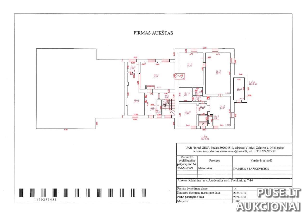 Bendras parduodamų patalpų plotas yra 189,91 kv. m, jos yra pirmame pastato aukšte.