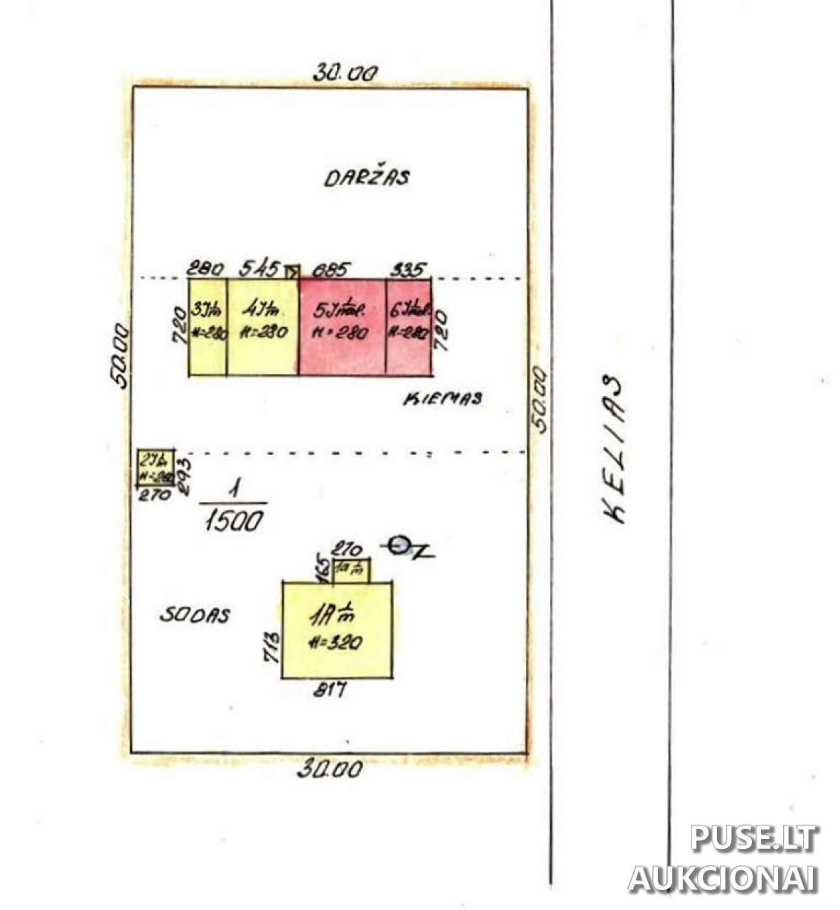 Į parduodamą dalį įeina ir 1/2 dalis 0.1000 ha žemės sklypo, esančio toje pačioje adresinėje (sklypo Nr. 4400-0302-3545, Gataučių sen.). Svarbu atkreipti dėmesį, kad žemės sklypo ribos ir plotas gali keistis po to, kai laimėtojas atliks matavimus valstybinėje koordinačių sistemoje, nes jis suformuotas preliminariais matavimais.