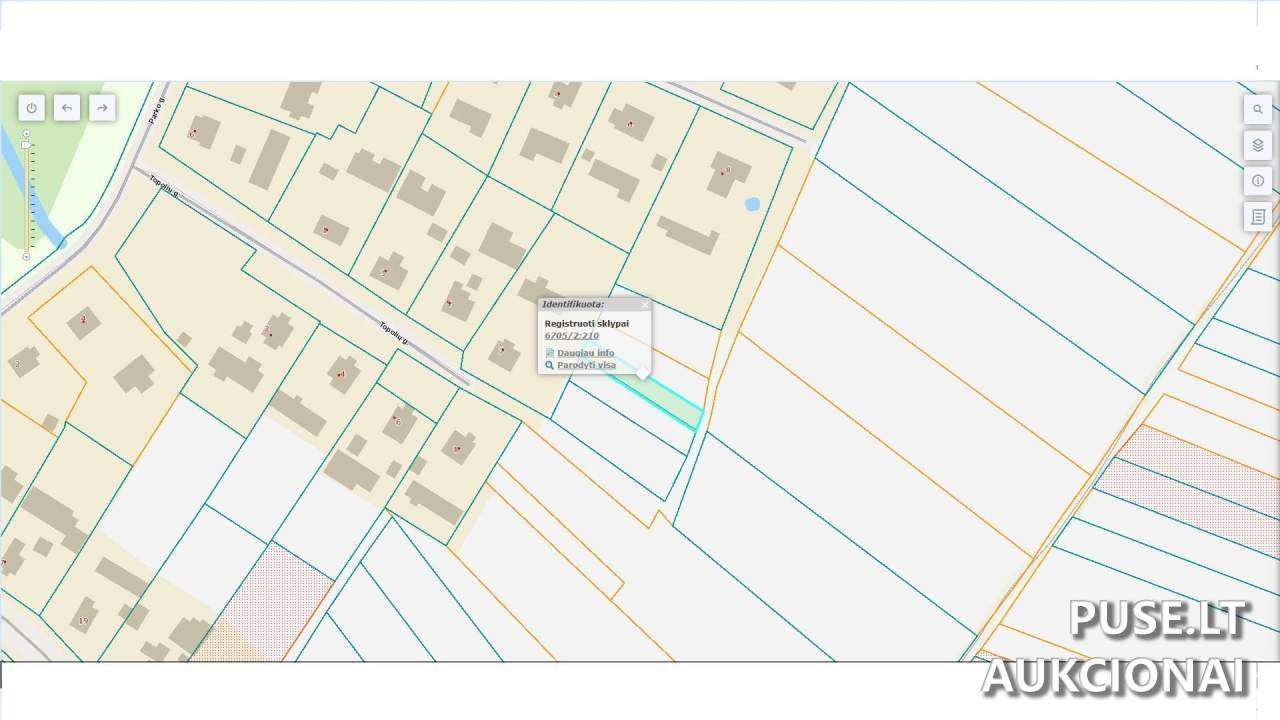 Žemės sklypo kadastro numeris yra 6705/0002:210, o unikalus numeris yra 6705-0002-0210.