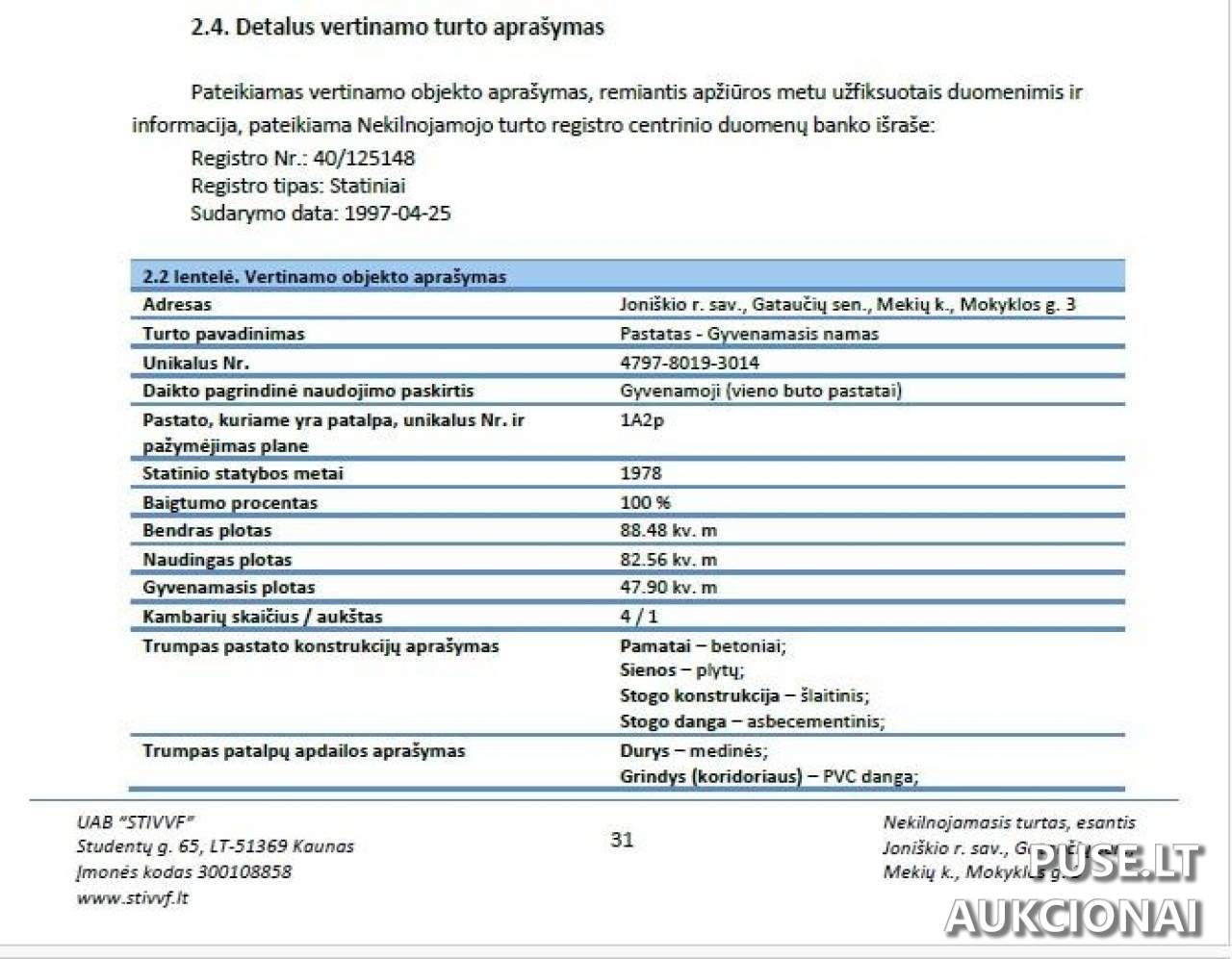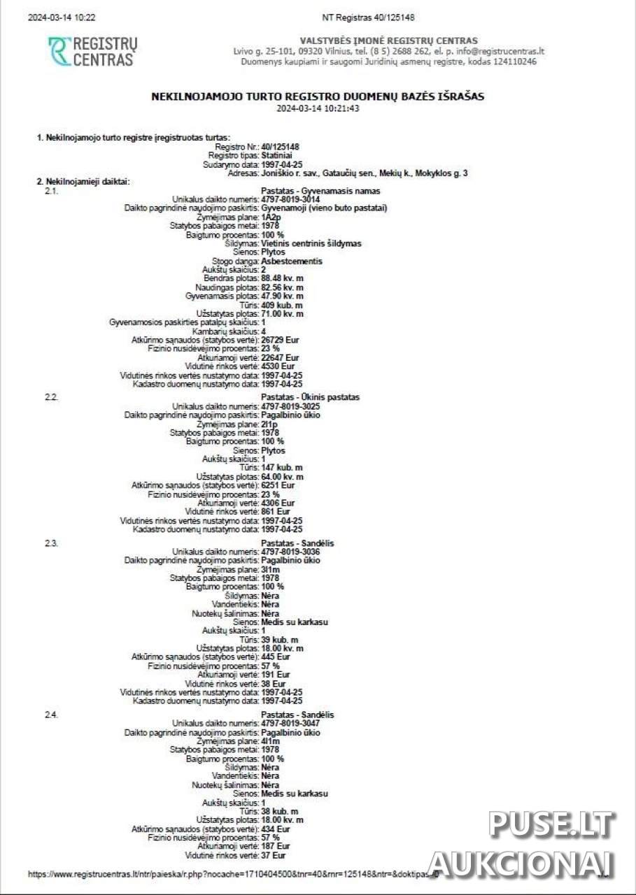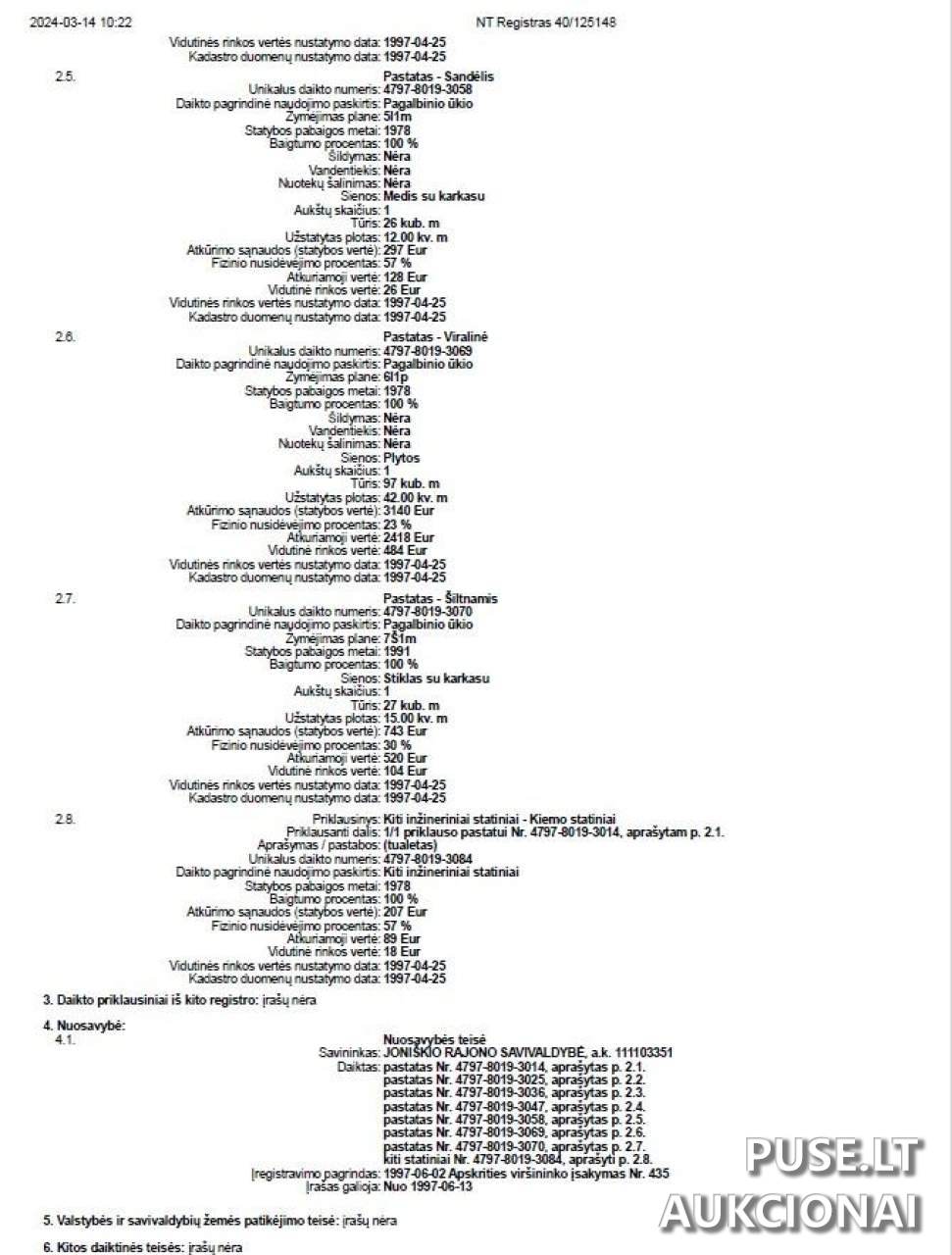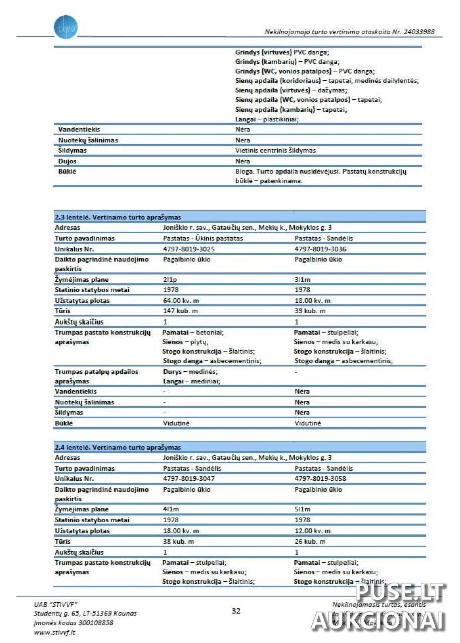 Turto apžiūra ir papildoma informacija teikiama susisiekus su Joniškio rajono savivaldybės administracijos specialistais.