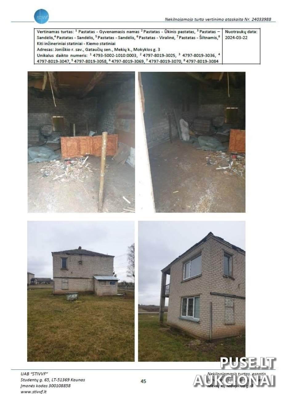 Parduodamas nekilnojamojo turto kompleksas Joniškio rajono savivaldybėje, Mekių kaime, Mokyklos gatvėje 3, Joniškio r. savivaldybės. Šis kompleksas parduodamas pakartotiniame aukcione su pradine kaina 4785 EUR. Parduodama 1/1 turto dalis. Kompleksą sudaro keli objektai, įskaitant gyvenamąjį namą, ūkinį pastatą, sandėlius, viralinę ir šiltnamį.