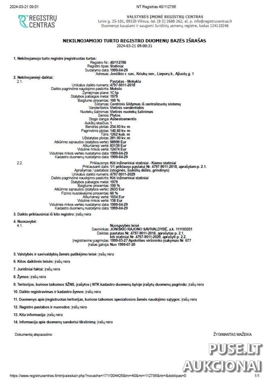 Dėl turto apžiūros galimybės ir detalesnės informacijos prašome kreiptis į Joniškio rajono savivaldybės administracijos specialistus.