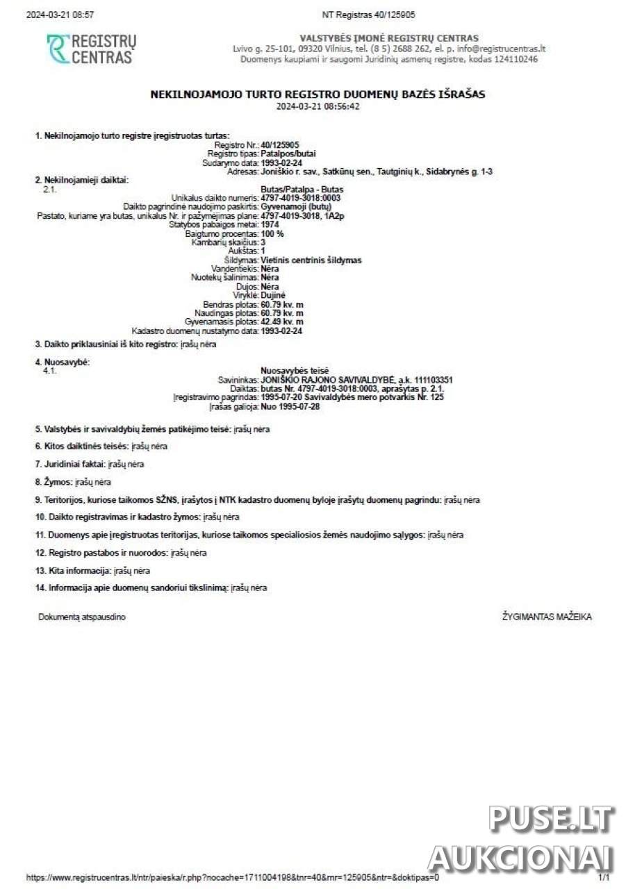 Parduodama 1/1 buto (unikalus Nr. 4797-4019-3018:0003) su 60,79 kv. m bendru plotu, taip pat 1/8 ūkinio pastato.