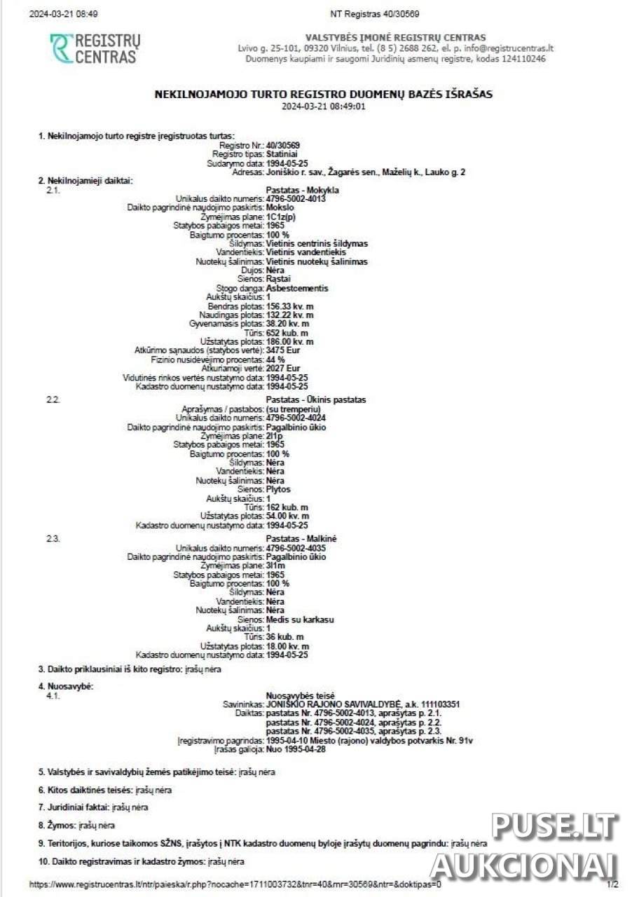 Šis turtas Joniškio rajono savivaldybės aukcione siūlomas viešajame pardavime. Garantinis mokestis, kurį privaloma sumokėti dalyvaujant, siekia 412 EUR, papildomas registracijos mokestis – 20 EUR.