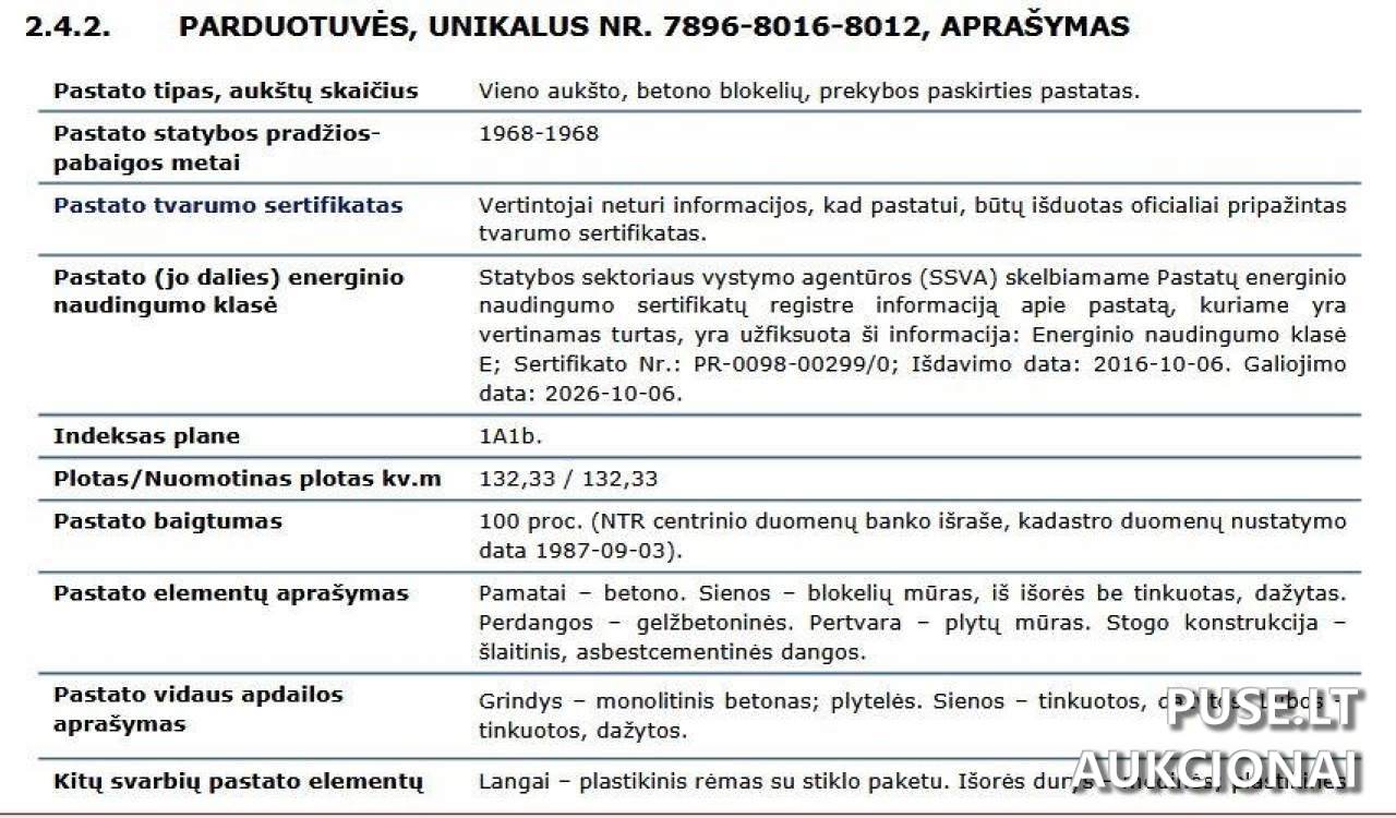 Kokia yra parduodamo parduotuvės pastato pradinė kaina?