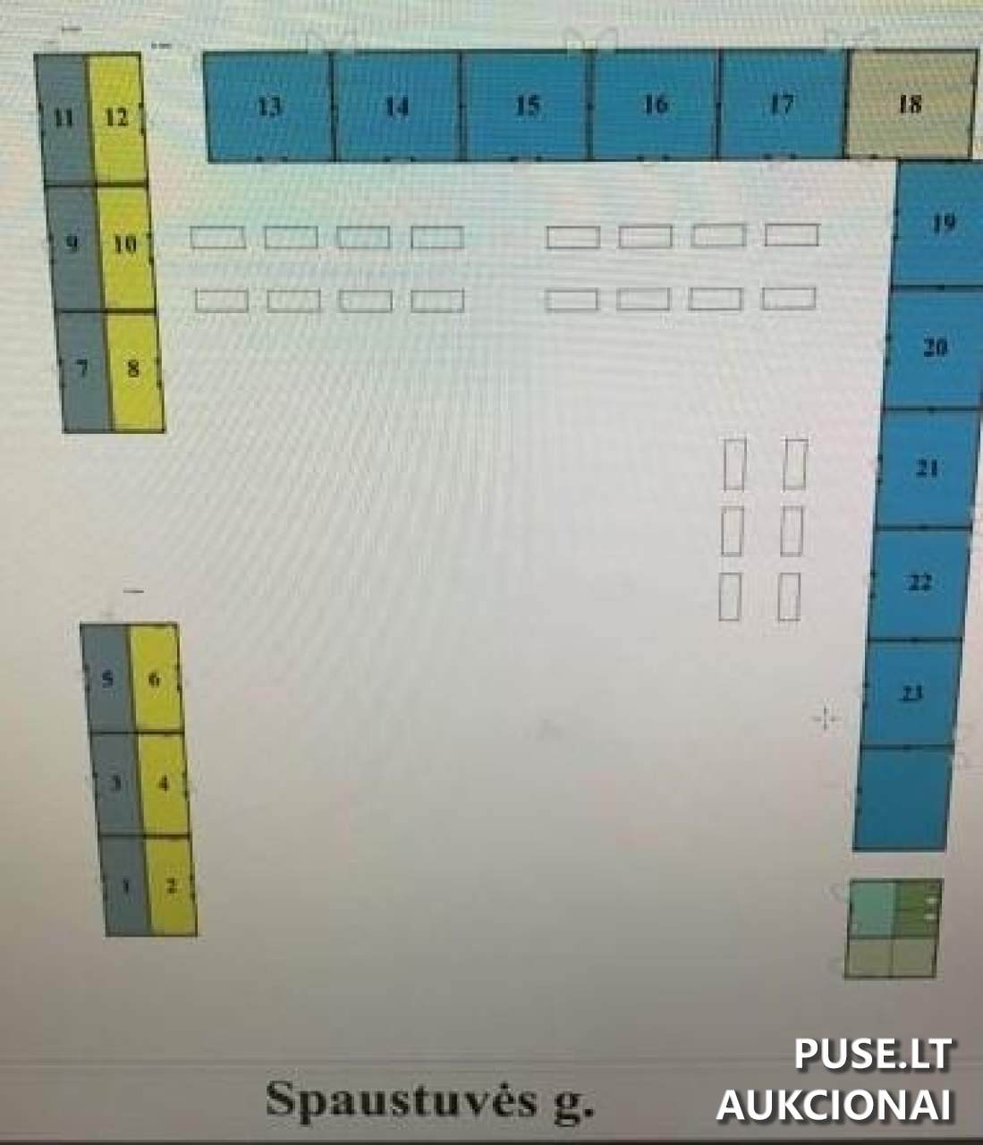 This is a re-offered lease tender for a real estate property: Structure (Kiosk) No. 23, located at Spaustuvės g. 1, Tauragė. The kiosk is newly constructed, measures 30 square meters, and consists of a single room.