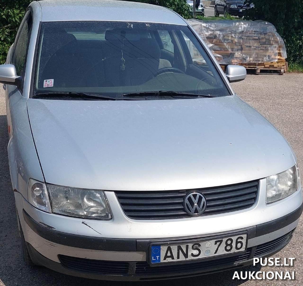A used 1998 VW Passat is being sold via auction with a starting bid of 200 EUR. This vehicle is declared technically non-roadworthy and is prohibited from traffic use. The car has significant defects: widespread corrosion (rust is present), the driver's side door cannot be opened from the inside, the running gear is worn out, there is a lack of traction, and excessive fuel consumption is noted, requiring a complete chassis repair. The interior is worn, seats are torn, tires are used, the radio does not work, and there are other minor faults. The mandatory technical inspection is expired.