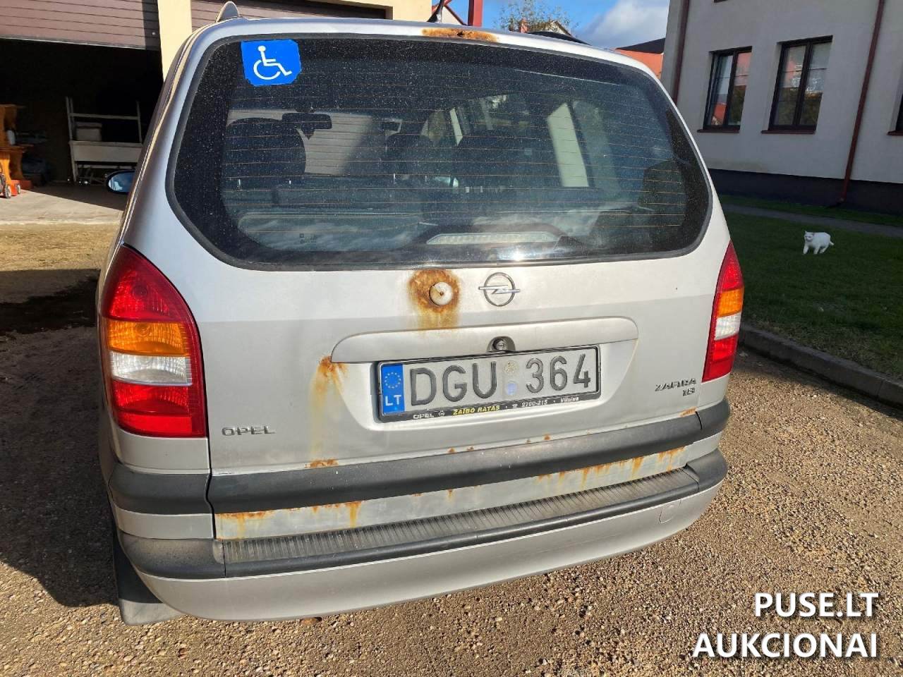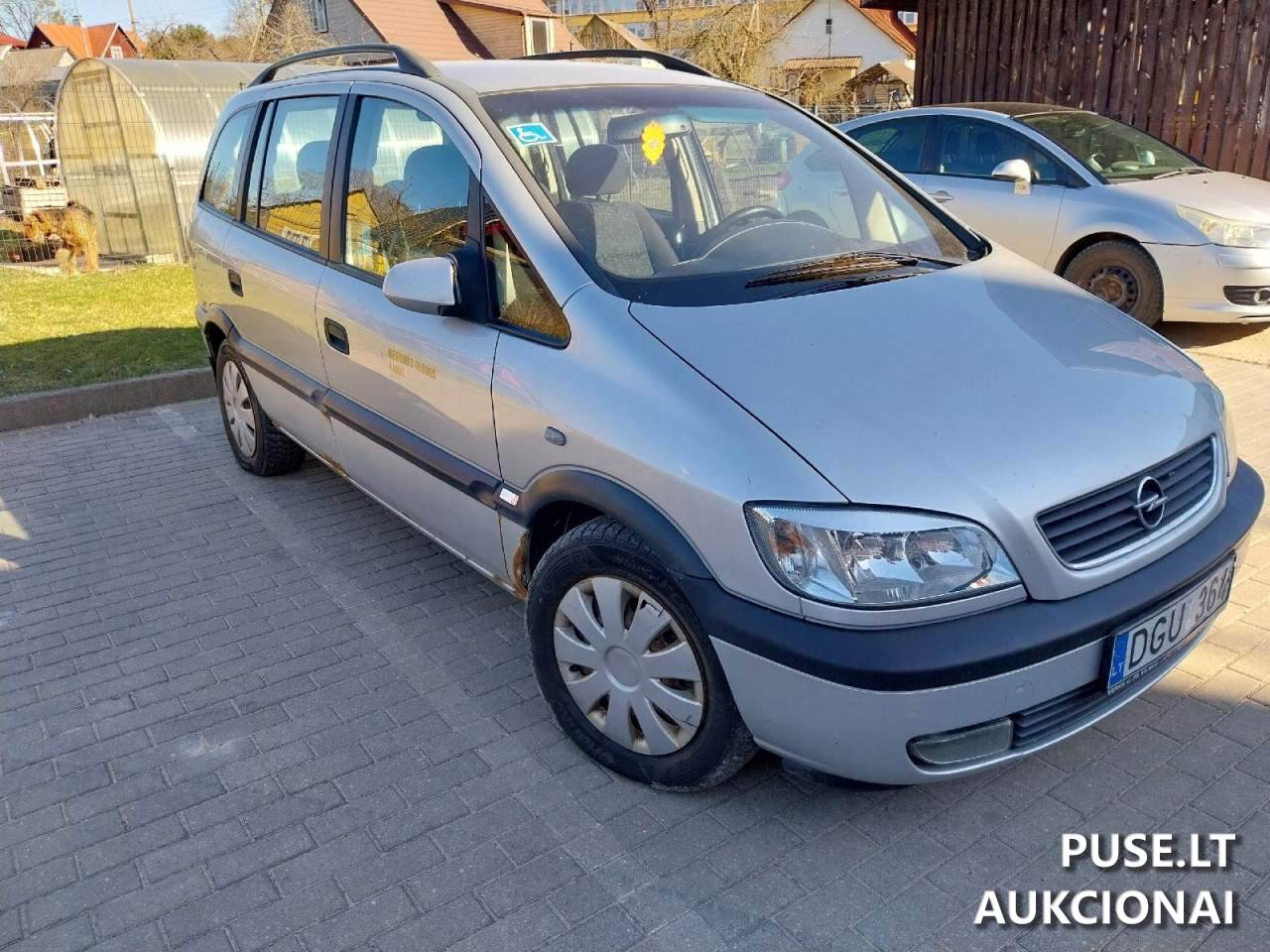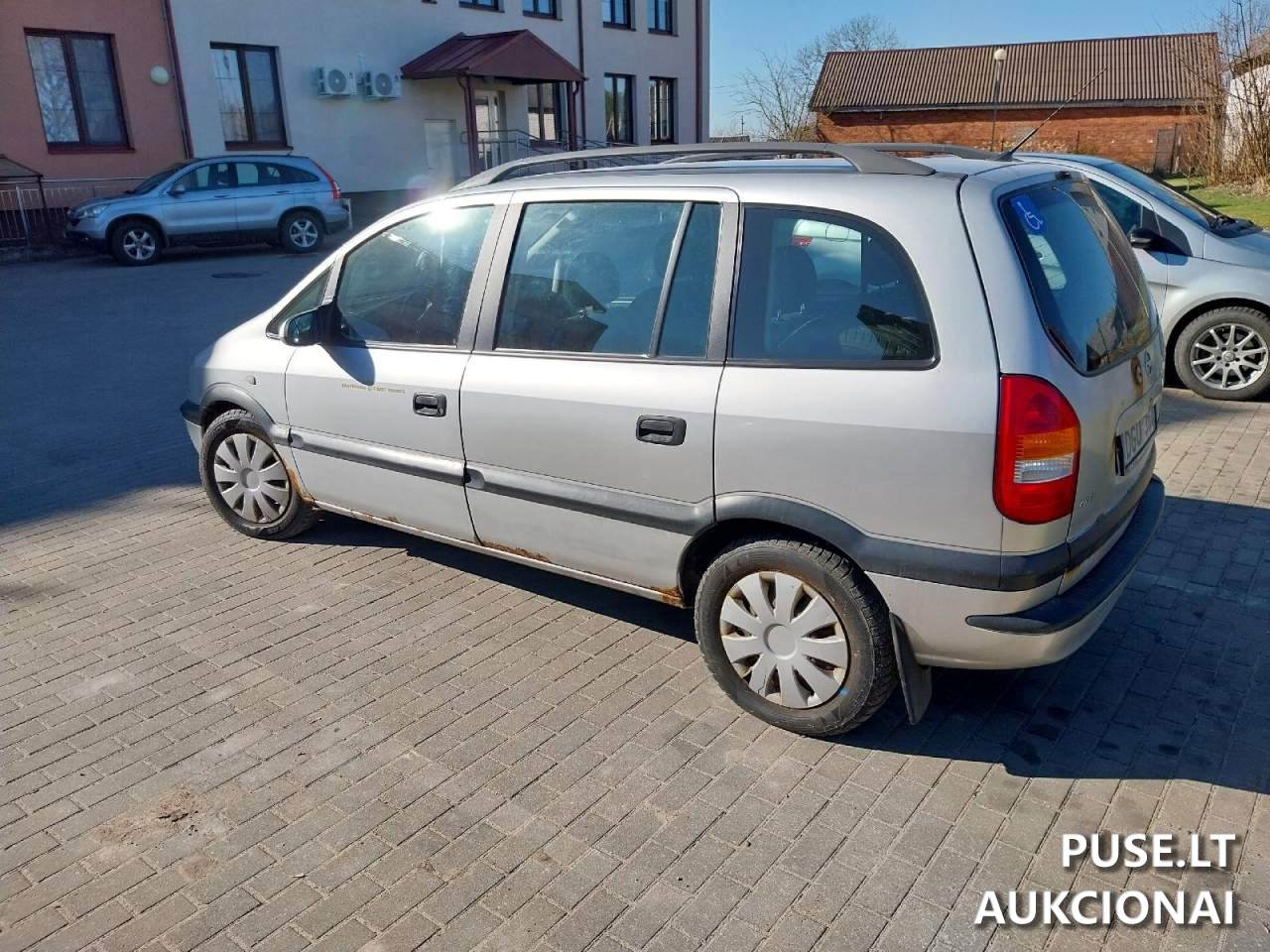 A used 2002 OPEL ZAFIRA passenger car is being sold via auction, with a starting bid of 200 EUR. This is an initial auction organized by the Varėnos rajono savivaldybės administracija.