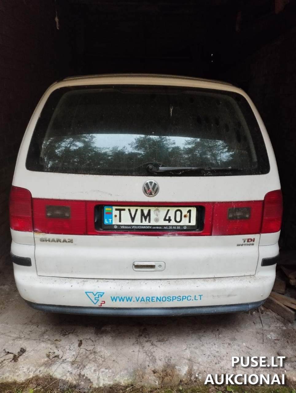 A 2002 VW SHARAN passenger car is being sold via a public auction starting with a minimum bid of 200 EUR. Please note this vehicle has significant issues: faulty engine, severe corrosion on the chassis and body, and a broken steering column. It currently lacks a valid technical inspection, and road use is strictly prohibited. The previous license plate number was TVM401. The vehicle's owner declaration code (SDK) is NNEATTMA, and its unique registration number is C556384.