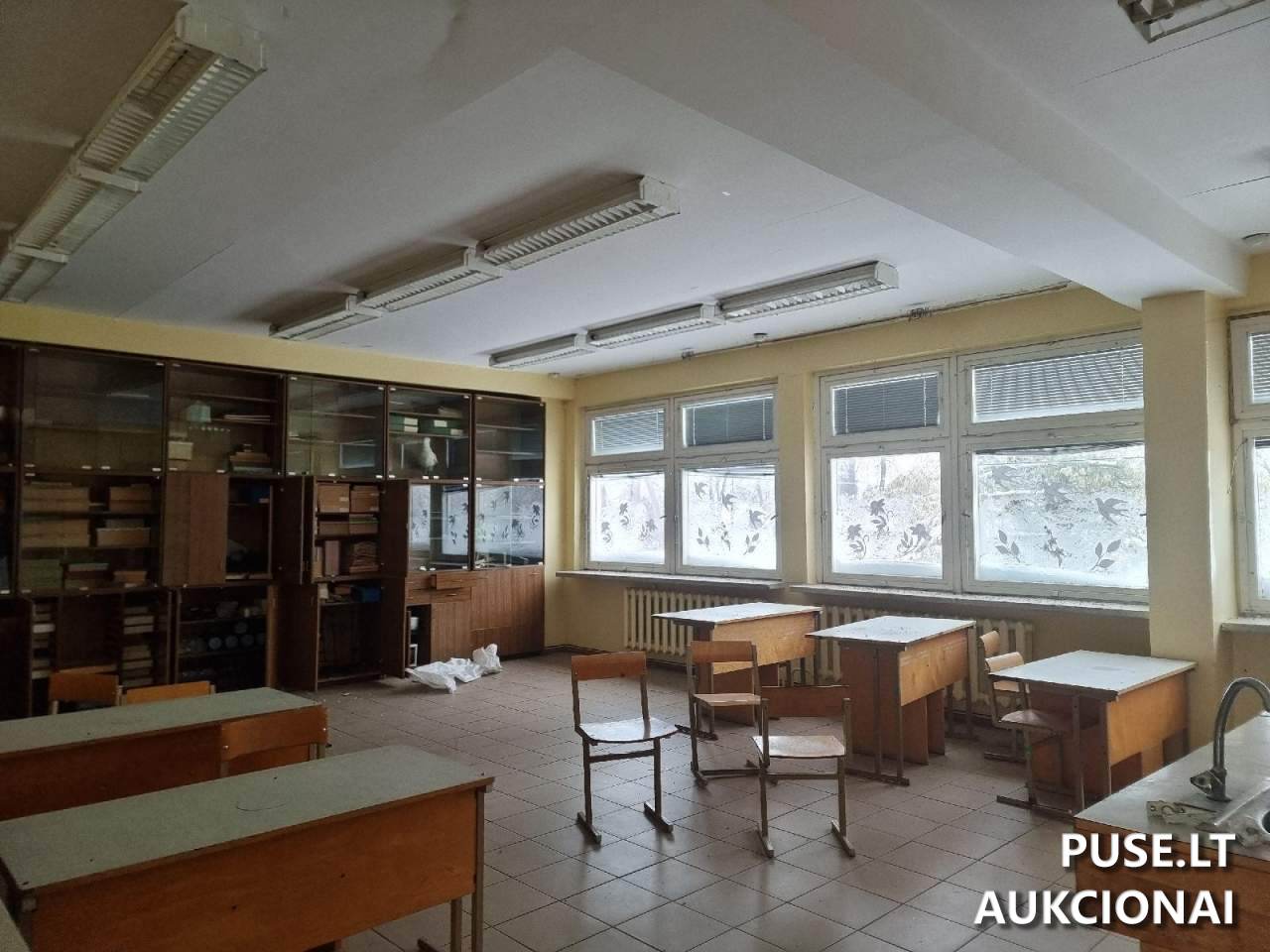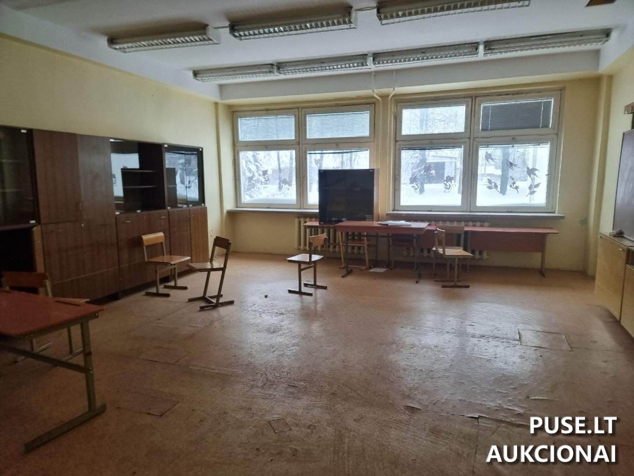 A substantial property classified as a school building is available for sale via auction in Salamiestis town, Kupiškis District Municipality, located at Mokyklos g. 1. This is a resale, offering a 1/1 ownership share. The total area of the building for sale is 2103.57 square meters. The unique object number is 5798-5006-1015.
