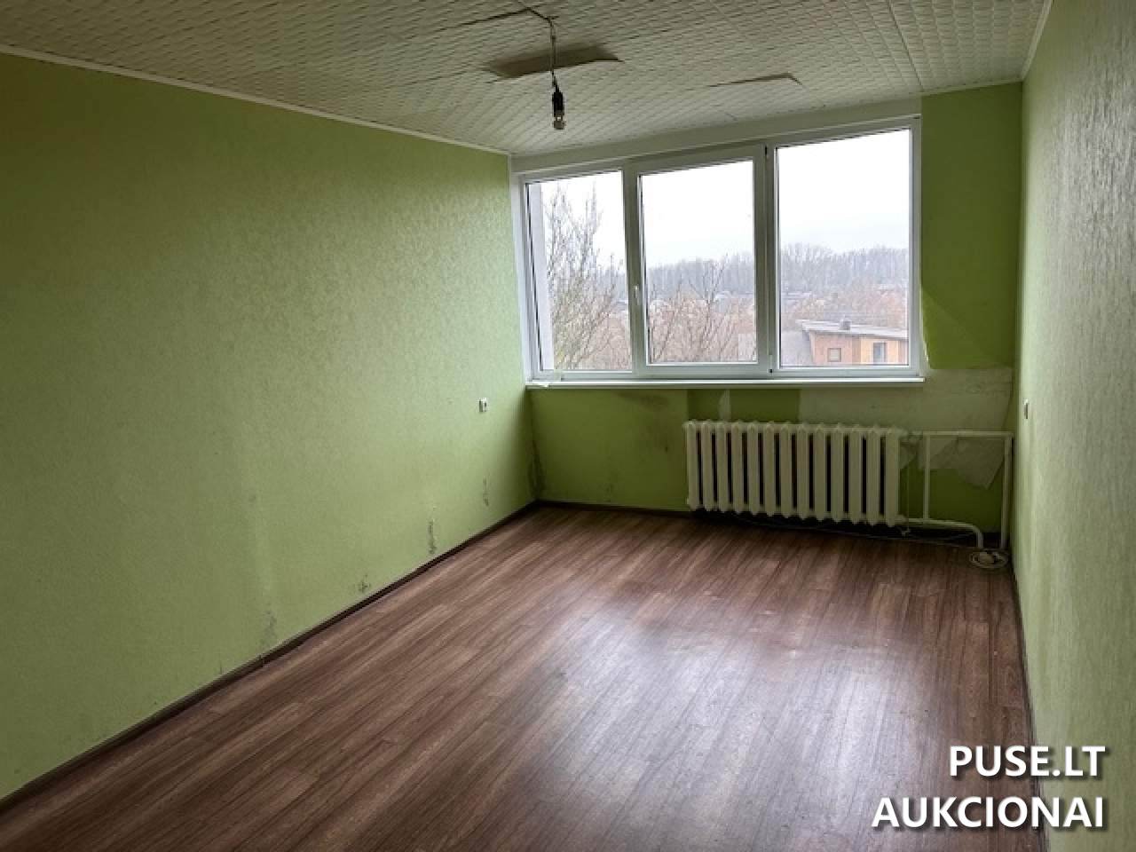 Important note: The provided cadastral survey file might not match the current layout, and savivaldybė neįsipareigoja nustatyti ar atnaujinti aktualios nekilnojamojo turto kadastro data regarding the property's condition. The real estate is sold as-is, based on its current factual and functional state. Savivaldybė taip pat neįsipareigoja iškraustyti asmenų ar daiktų currently occupying the premises.