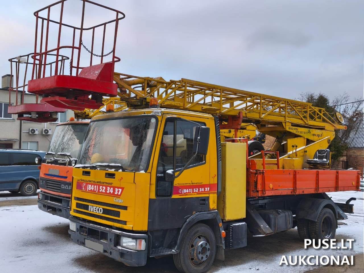 Parduodamas naudotas krovininis platforminis autobokštelis IVECO 75E15 (Tipas: Pakartotinis kiti aukcionai) su pradine 5000 EUR kaina. Ši transporto priemonė pagaminta 2000 metų kovo mėnesį, turi 5861 kub. cm darbinio tūrio dyzelinį variklį, kurio galia 105 kW. Transporto priemonės rida siekia 122627 km, ji parduodama be defektų ir su galiojančia technine apžiūra (TA).