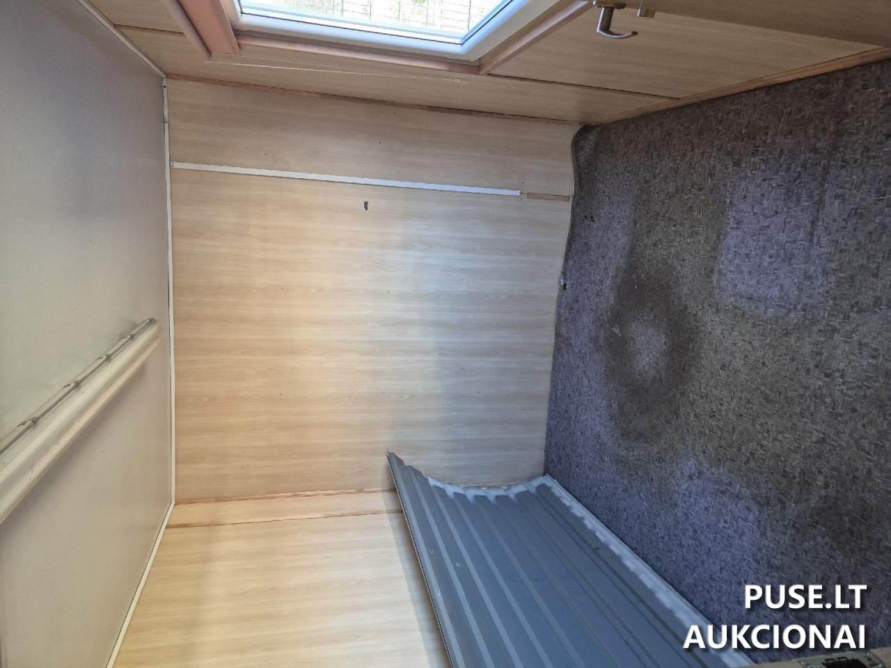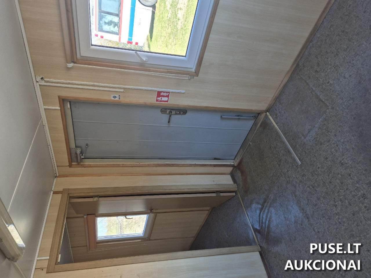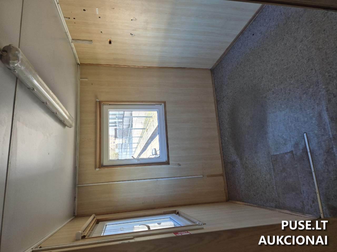Продается небольшой контейнерный дом в Скуодасе, стартовая цена от 500 EUR. Этот объект вторичного рынка, относящийся к категории «Аукционы - Иное имущество», имеет общую внутреннюю площадь 12,7 квадратных метра и высоту потолков 2,20 метра. Внешняя обшивка выполнена из листового металла (жести), а полы – из прессованных древесно-стружечных плит. Установлены пластиковые окна с поворотно-откидным механизмом. Двери сделаны из фанеры и жести.