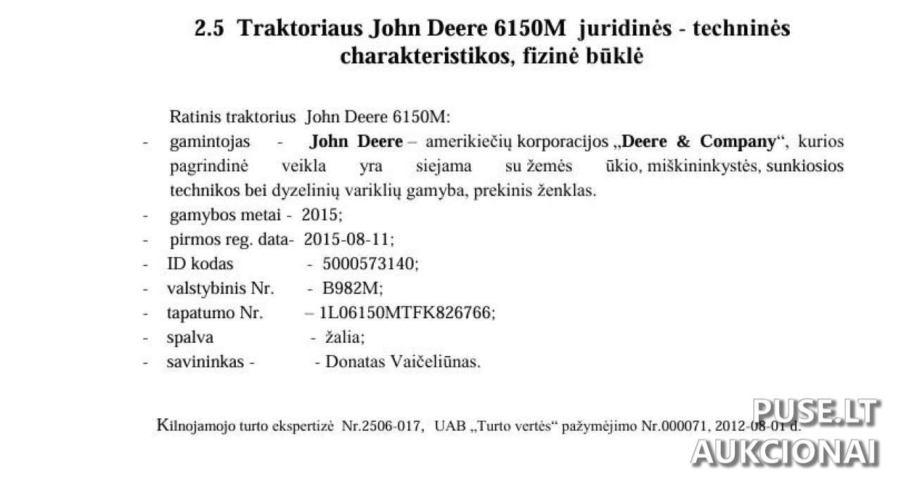 Продається трактор John Deere 6150M на торгах судового пристава. Початкова ціна становить 44940 EUR. Ця одиниця техніки належить до категорії "Трактори, самохідні машини, причепи, напівпричепи".