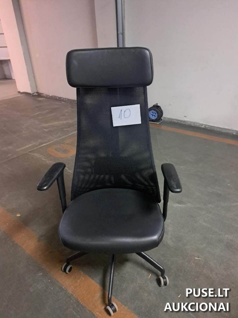 Продається комплект із 10 офісних крісел у Вільнюсі через первинний аукціон купівлі-продажу. Це гарна нагода придбати оптом меблі для офісу за стартовою ціною 400 EUR. Усі крісла чорного кольору, оббиті шкірозамінником, мають видимі сліди попереднього використання. Продаються лише комплектами по 10 штук, крісла різних моделей.